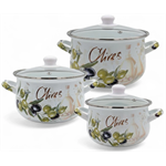 Набір каструль 1,6л, 2,3л, 3,0л емальованих з кришками Verona; арт. VR-0004-03 (ОЛИВКИ) VERONA VR-0004-03